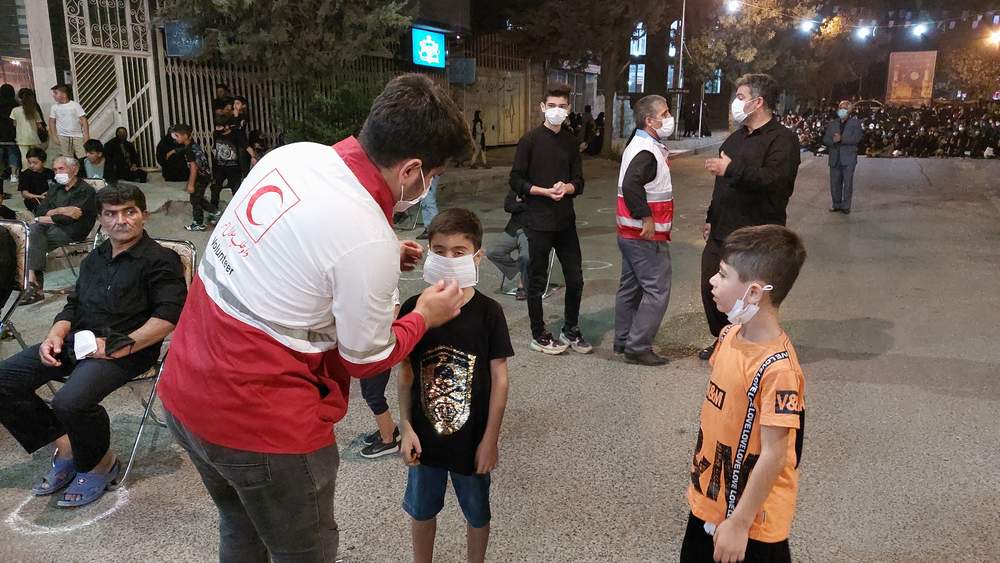 تداوم طرح ناظران سلامت و اجرای طرح نذر سلامت همراه با خادمان حسینی با هدف حساس سازی و پیشگیری از ویروس کرونا و توزیع ماسک و مواد ضدعفونی کننده توسط اعضای جوانان، داوطلبان، امدادگران و نجاتگران جمعیت هلال احمر استان اردبیل /گزارش تصویری