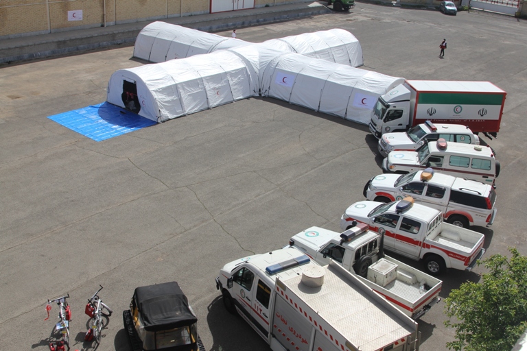 آیین رونمایی از بیمارستان صحرایی سریع استقرار (RDH)، توزیع ۱۰۰۰ سبد معیشتی و رونمایی از سامانه پیام صوتی امداد به مناسبت هفته هلال احمر و با حضور مقامات عالی استان / گزارش تصویری