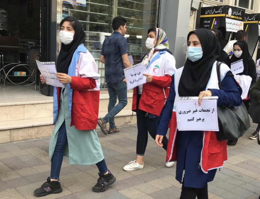 راهپبمایی هلال احمری های اردبیل برای آگاه سازی مردم جهت پیشگیری از کرونا / گزارش تصویری